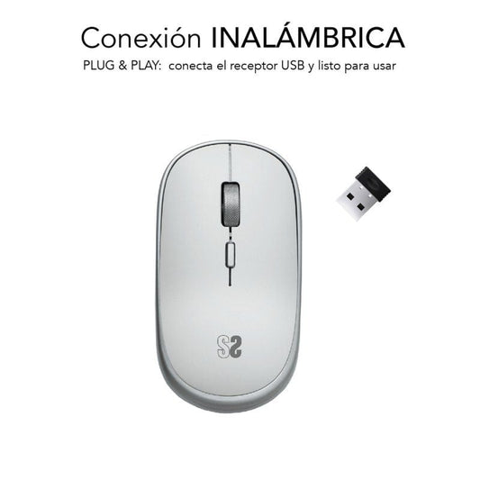 Ratón Mini Inalámbrico Subblim Wireless Mini/ Hasta 1600 DPI/ Plata
