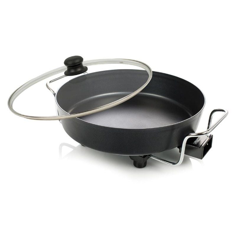 'El cable de alimentación extraíble cuenta con un termostato ajustable 'para que pueda ajustar la temperatura óptima. De este modo, podrá 'utilizar la cazuela Princess Multi Wonder Chef Pro para freír 'rápidamente o para cocinar platos despacio, como un guiso de cerdo. El 'doble elemento calentador distribuye el calor de manera uniforme, por lo' que ofrece unos resultados óptimos. La cazuela multiusos se conecta a 'la red eléctrica y es ideal para fiestas y barbacoas, ya que mantiene 'los platos y las salsas a la temperatura adecuada.'