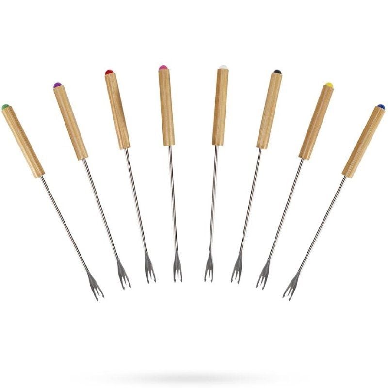 Junto con la fondue Princess Fondue Pure, recibirá 8 tenedores para fondue de bambú con un código de color para que pueda disfrutar de la fondue con toda la familia. El termostato extraíble, con una potencia de 800 W, tiene claras indicaciones para que pueda seleccionar fácilmente la temperatura óptima para cada tipo de fondue.