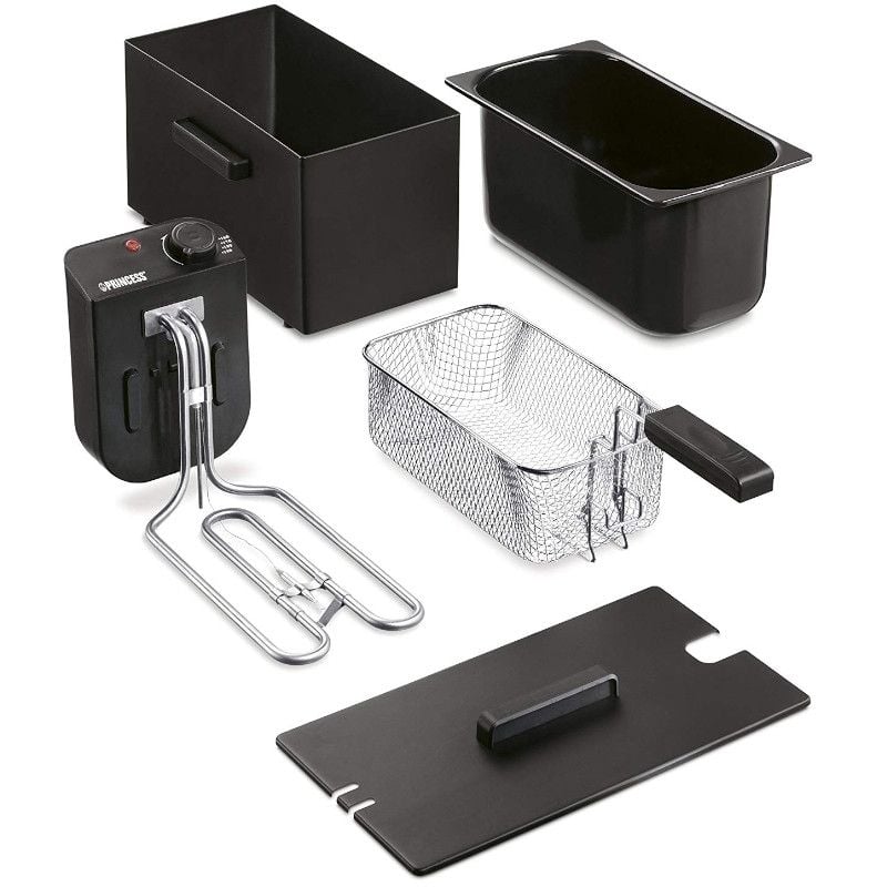 'Freidora Princess negra, cesta con asa, recipiente esmaltado extraíble, filtro de aceite de seguridad, manual de instruccionesRazones para escoger la freidora Princess negra: