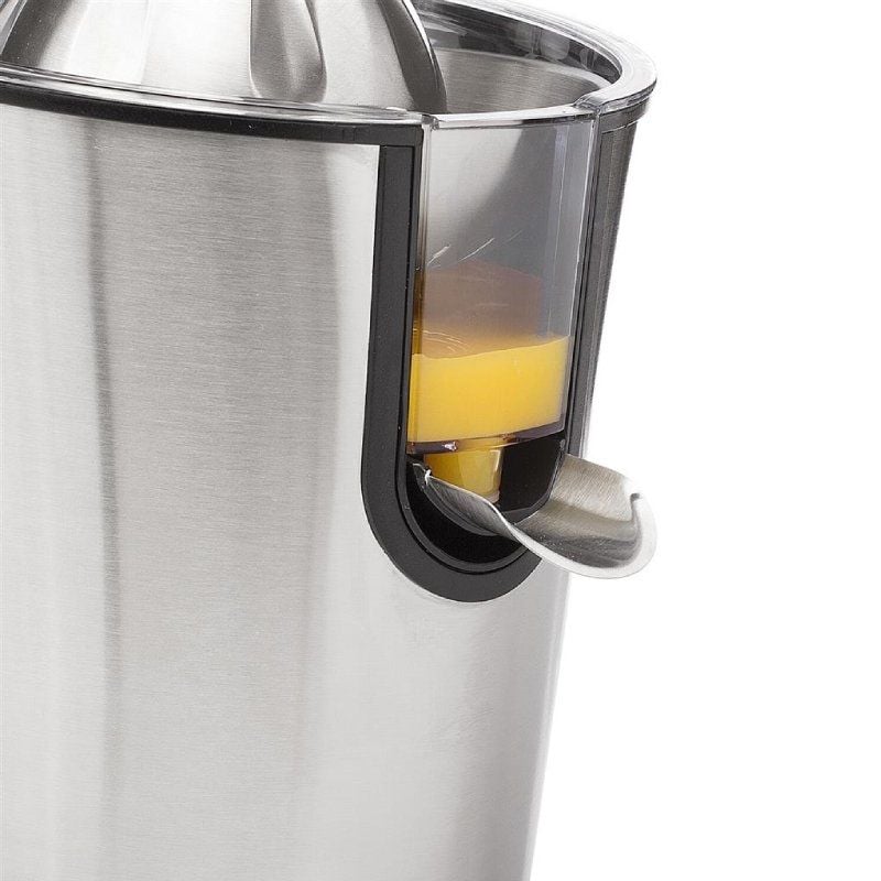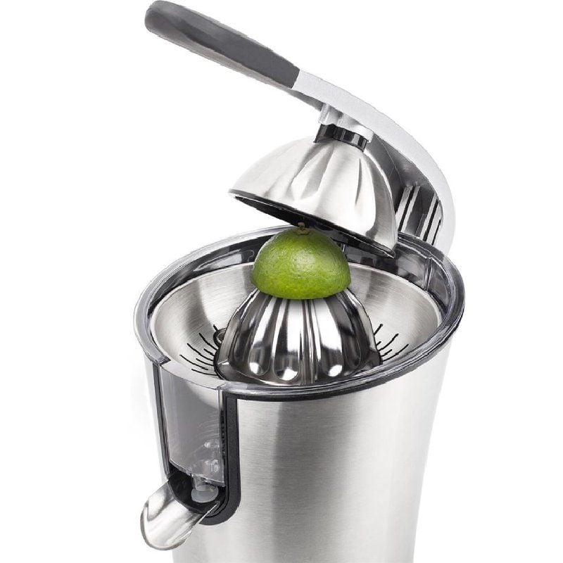 - Gracias a su resistente material de acero inoxidable y a sus 300 vatios, el exprimidor de acero inoxidable es adecuado para todo tipo de cítricos, grandes y pequeños.