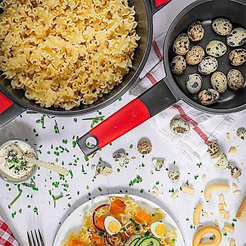 - Mango ergonómico en color negro con silicona de color rojo para un agarre agradable y seguro. '