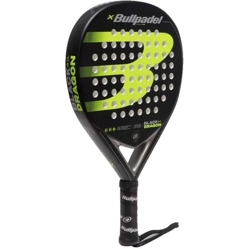 Tiene forma redonda. El marco y las caras presentan una tonalidad negro. Sobre el centro de los planos aparece con un cromatismo la 'B' típica de Bullpadel. Sobre el costado derecho de los dos haces aparece la leyenda 'BLACK DRAGON' con caracteres pequeños.
