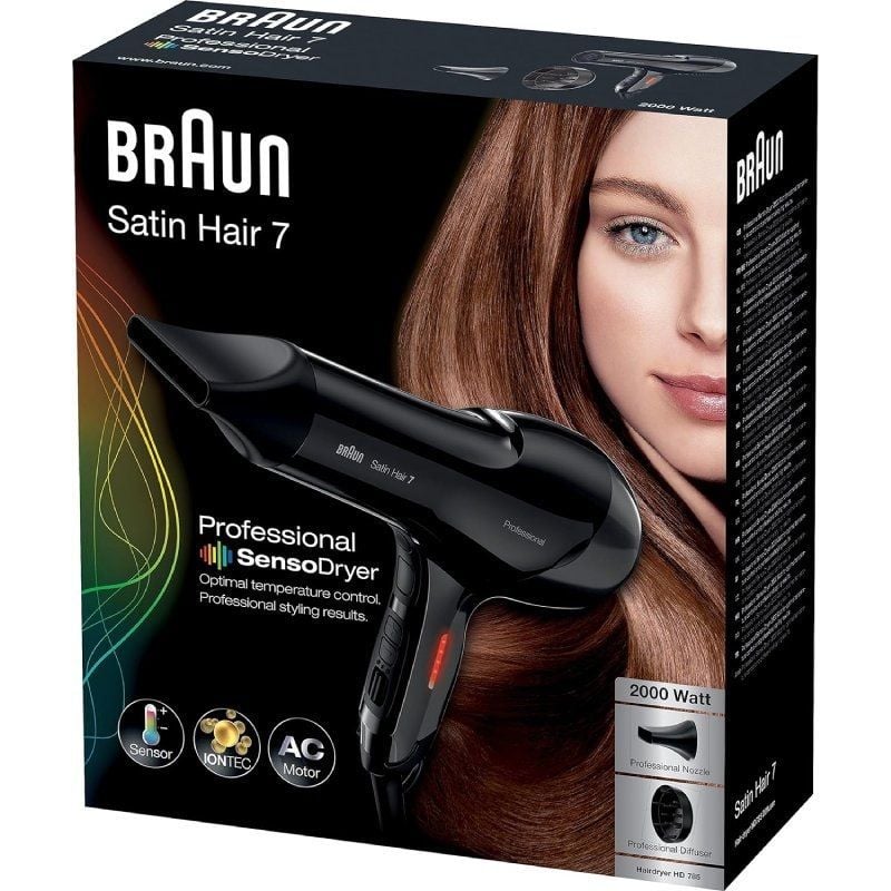 Secador Braun Satin Hair 7 Professional SensoDryer HD785/ 2000W/ Iónico/ Negro