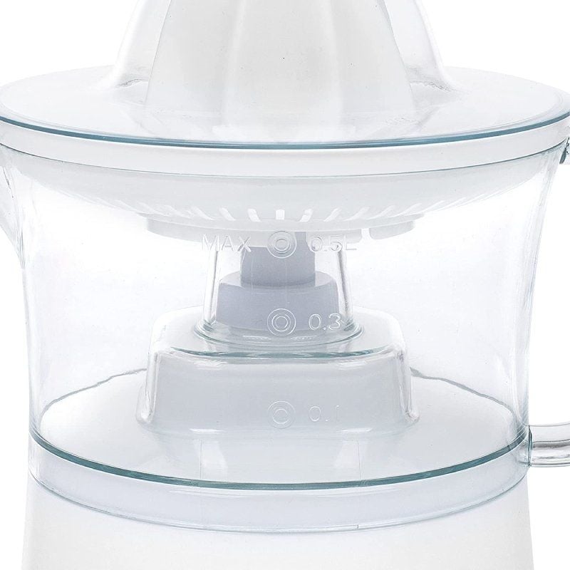 'Práctico exprimidor con un volumen de 0,5 litros y jarra extraíble.'Dos conos para exprimir distintos para diferentes frutas.