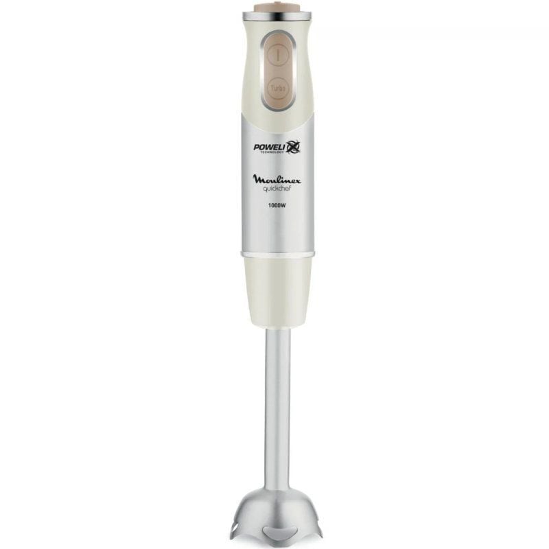 Rendimiento excepcional y resultados de batido impecables y rápidos: ¡Quickchef de Moulinex te facilita la vida! Las 4 cuchillas con avanzada tecnología Powelix ofrecen un rendimiento un 30% más rápido que nuestros modelos de doble cuchilla, poniendo al alcance de tu mano unos resultados increíblemente suaves y cremosos. Los 1000 W de potencia garantizan un rendimiento rápido y uniforme, y con 10 velocidades ajustables en un cómodo brazo antideslizante que te permiten obtener la textura deseada. Los versátiles accesorios para picar y montar completan sus prestaciones, para una inspiración sin fin y multitud de recetas.