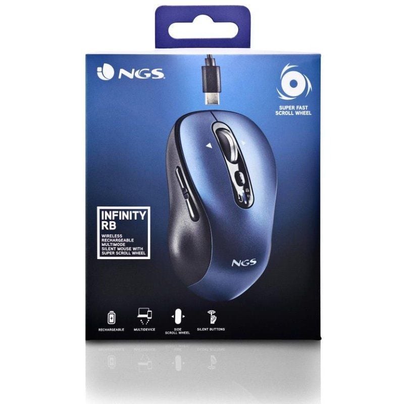 Ratón Inalámbrico por Bluetooth NGS Infinity-RB/ Batería recargable/ Hasta 3200 DPI/ Azul