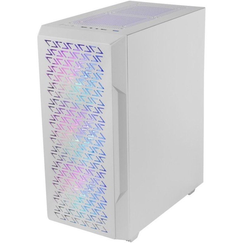 'Con panel frontal Mesh geométrico, 4 ventiladores FRGB Rainbow de 120mm de serie, ventana lateral de cristal templado, soporte para refrigeración líquida de hasta 360mm y un diseño de doble cámara, la caja de ordenador MC-GEO fusiona potencia y estilo en una torre ATX diseñada para maximizar la refrigeración y el rendimiento.