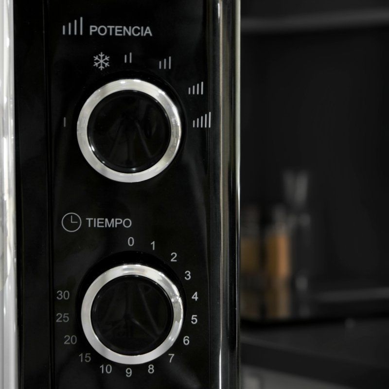 - MODELO VINTAGE Y GRAN CAPACIDAD: Microondas de 20 litros de capacidad con diseño clásico y funcional en color Negro, lo que te permitirá cocinar todo tipo de alimentos a la vez que hace de elemento decorativo. '