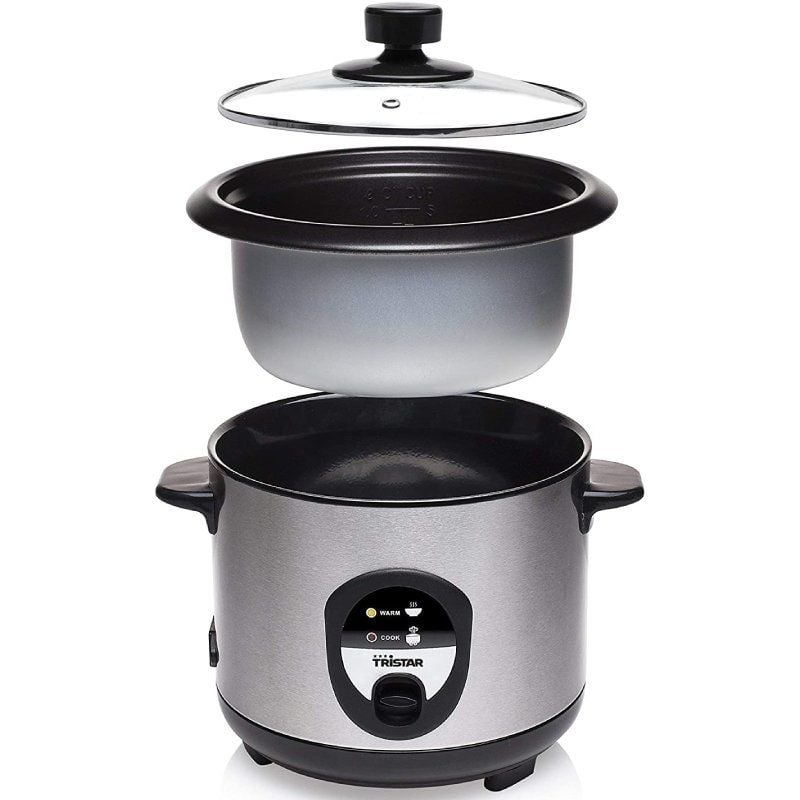 'La arrocera Tristar está equipada con una cubeta interior con recubrimiento antiadherente que evita que el arroz se pegue a la cubeta y es muy fácil de limpiar. Además, la cubeta interior es extraíble por lo que es todavía más fácil limpiarla.