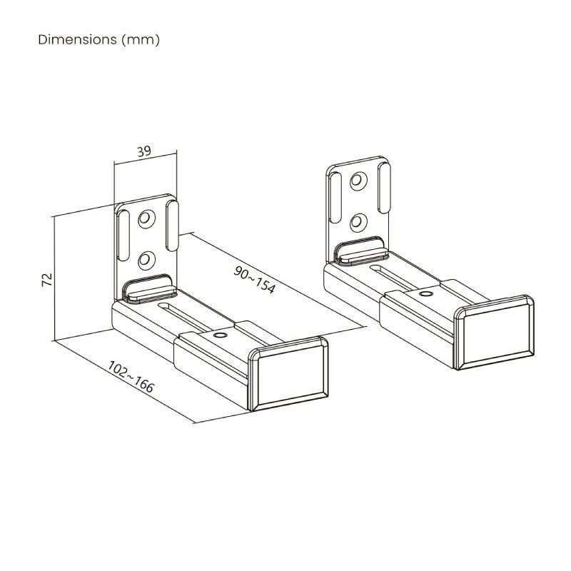 - Este soporte se adapta a barras de sonido con una profundidad de entre 90 y 154mm. '