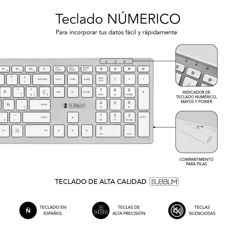 Teclado Inalámbrico por Bluetooth Subblim 2PUE200 Pure Extended/ Plata