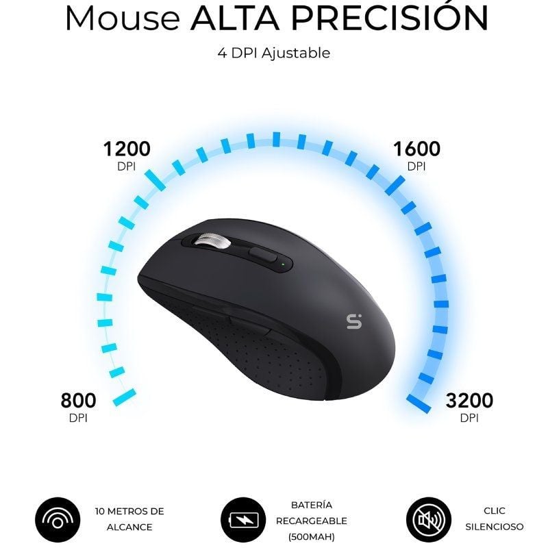 - Resolución de movimiento (DPI) 800 / 1200 / 1600 / 3200 (ajustable)
