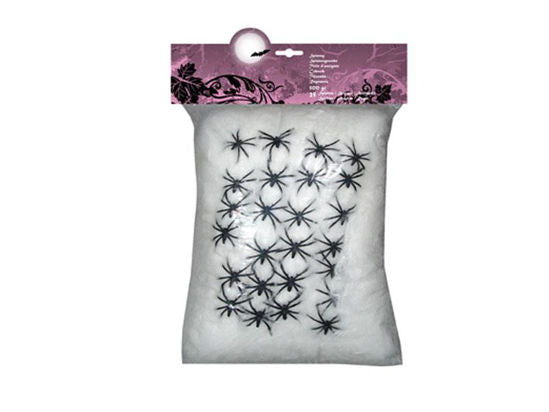 Telaraña blanca con 25 arañas y un peso de 500 gramos.